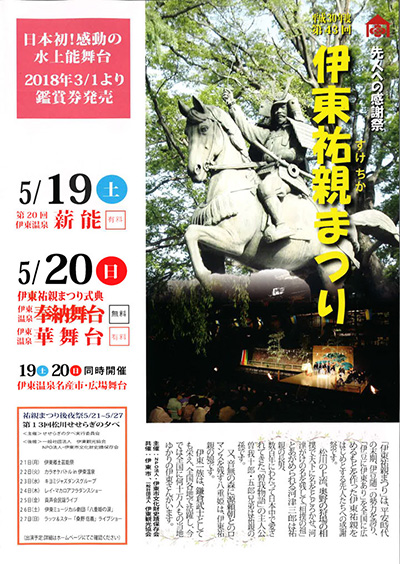 伊東一円を統一し、伊東の治水や文化発展に尽くした伊東祐親を顕彰するお祭り「伊東祐親まつり」が、5月19日(土)・20日(日)に開催されます。