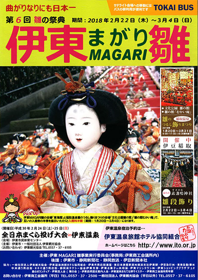 また商店街での「街かど雛飾り」や伊東市役所1階ロビーでの「末広の雛」など、あちこちで可憐な雛飾りをご覧頂けます。