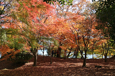 次第に湖畔の木々が色づき、十二連島やモミジ林がきれいな紅葉で飾られます。