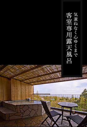 すべてのお部屋に海一望の大きな露天風呂。いつでも気兼ねなくお好きな時にご利用いただけます。